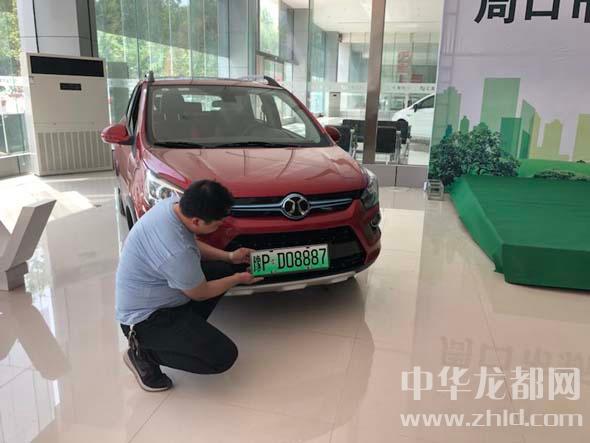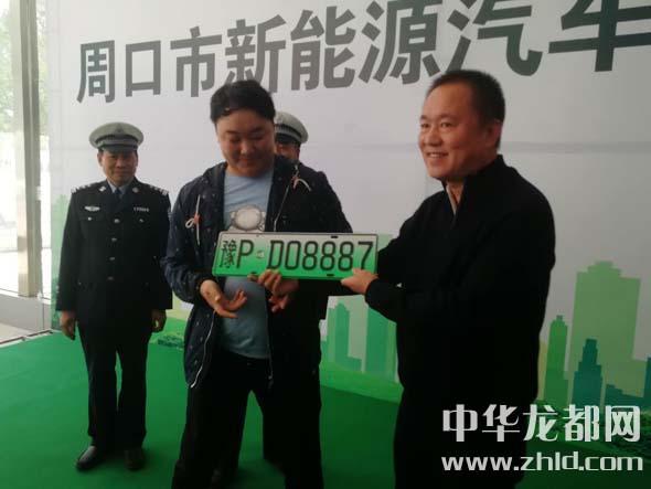 中華龍都網(wǎng)訊(周口報(bào)業(yè)全媒體記者 姬慧洋 陳永團(tuán) 文/圖)4月10日上午10時(shí),在市區(qū)太清路與昆侖路交叉口附近,我市新能源汽車號牌發(fā)放儀式啟動,在啟動儀式上周口市公安局交通管理支隊(duì)支隊(duì)長謝偉親手將“豫PD08887”這副新能源汽車號牌送到車主張磊的手中。據(jù)介紹,為了能夠盡早選到自己心儀的號牌,家住市區(qū)漢陽路附近的張磊一大早就趕到了位于建設(shè)大道與周口大道交叉口周口幼師北門附近的萬達(dá)便民服務(wù)站,在現(xiàn)場通過“50選1”的號牌選擇方式,喜獲自己心儀的號牌。