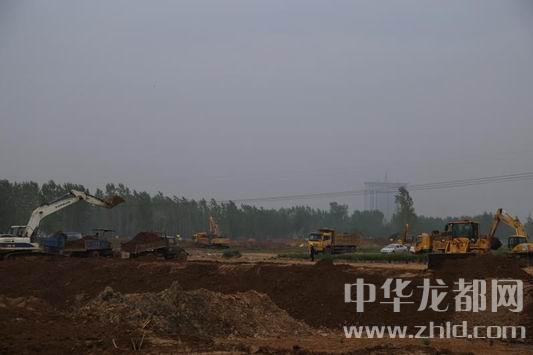 中華龍都網(wǎng)訊(周口報(bào)業(yè)全媒體記者 張勁松文/圖)4月21日上午,記者在東新區(qū)引黃調(diào)蓄施工現(xiàn)場(chǎng)了解到,截至目前,該項(xiàng)目已開(kāi)挖土方79萬(wàn)立方米,遷墳682座,伐樹(shù)21578棵。當(dāng)日上午9時(shí)許,記者在施工現(xiàn)場(chǎng)看到,大型挖掘機(jī)、翻斗車(chē)把挖出的黃土拉向湖岸的位置。推土機(jī)轟鳴著在平整場(chǎng)地,酒水車(chē)在整個(gè)施工現(xiàn)場(chǎng)來(lái)回不停地奔跑降塵,整個(gè)施工現(xiàn)場(chǎng)60余臺(tái)機(jī)械來(lái)往穿梭,湖的雛形正在形成,湖的面積逐漸“長(zhǎng)”大,北岸湖堤也在逐漸隆起。