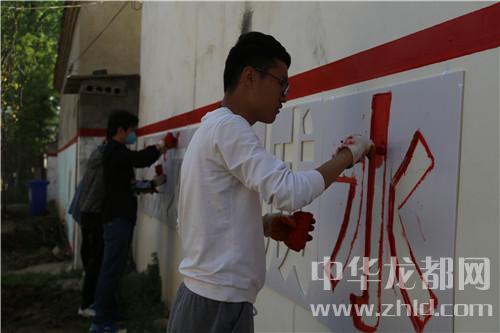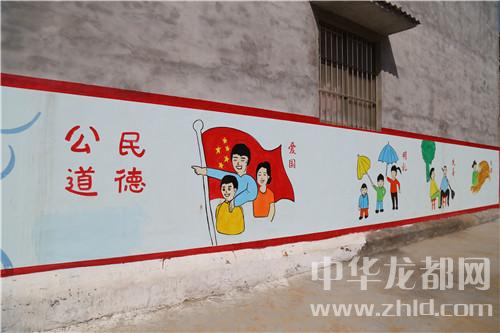 當日16時許,記者在該村看到,干凈整潔的水泥路像玉帶在村中盤旋,街道兩側(cè)栽植不久的小樹在向人們招手,坑塘四周干凈整潔,綠樹環(huán)繞,塘水清澈,梳理有致,房前屋后干凈整潔……天空中雖然下著雨,但是記者遠遠的就聽到了群眾的談笑聲和機械的轟鳴聲,走近,原來是村民們不顧天氣下雨,依然在自發(fā)地進行道路清理工作。記者看到,該村墻體文化更讓村子增加了很多的“內(nèi)涵”。