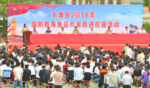 中華龍都網(wǎng)訊(周口報業(yè)全媒體記者 馬治衛(wèi) 通訊員 許皓)5月29日,太康縣2018年國防教育暨征兵宣傳進(jìn)校園活動啟動儀式在該縣第二高級中學(xué)舉行。太康縣委常委、常務(wù)副縣長張保華,縣人武部部長于永前等領(lǐng)導(dǎo)出席啟動儀式。