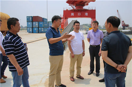 中華龍都網(wǎng)訊(周口報業(yè)全媒體記者 宋風(fēng) 文/圖) 6月22日上午,來自江蘇連云港、宿遷的兩家港口企業(yè)組團(tuán)到周口中心港參觀考察,交流業(yè)務(wù)。