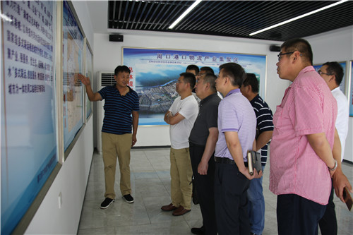 離開碼頭,考察團(tuán)來到中心港碼頭展廳,段傳奇向他們介紹了周口市委、市政府發(fā)展臨港經(jīng)濟(jì)、打造中原港城的戰(zhàn)略規(guī)劃,以及在全市發(fā)展戰(zhàn)略下,周口港區(qū)加大招商引資、發(fā)展多式聯(lián)運、打造臨港產(chǎn)業(yè)園區(qū)做出的一系列發(fā)展舉措。