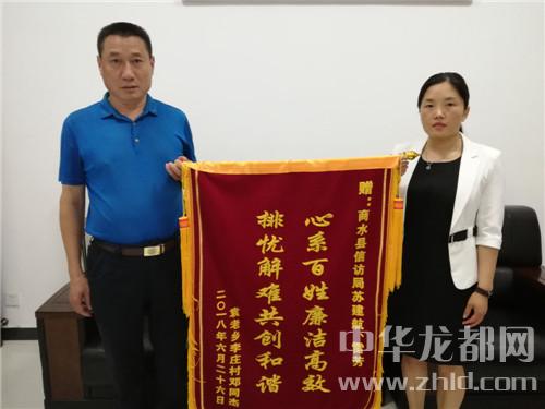 中華龍都網訊(周口報業(yè)全媒體記者 付永奇 通訊員魏紅 位慶華 )6月26日上午,商水縣信訪局門前鼓樂喧天、鞭炮齊鳴、人群涌動。其間,幾名群眾簇擁著一面上書“心系百姓廉潔高效排憂解難共創(chuàng)和諧”的錦旗徑自向商水縣信訪局走來。