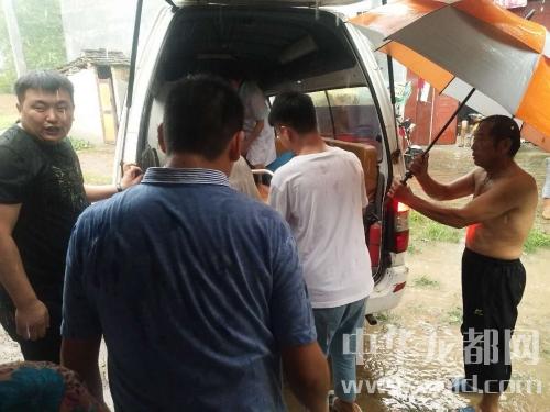 下午五點五十五分,鄲城縣第二人民醫(yī)院救護車到達現(xiàn)場。在經(jīng)過醫(yī)護人員的檢查后,建議送到醫(yī)院進一步治療。此時,大雨如瓢潑一般,幫扶隊員羅明飛等人不顧大雨傾盆,抬擔(dān)架,打雨傘,將病人王洪花抬上了救護車,羅明飛等人全身的衣服和鞋襪全部濕透。