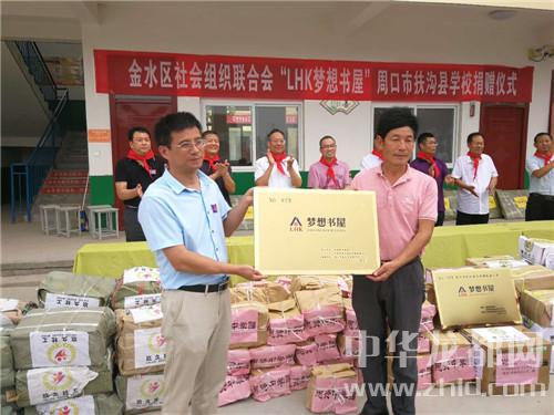 “LHK夢想書屋”(L:LOVE 愛;H:HAPPY AND HEALTHY 健康和快樂;K:KIND 友善),是由鄭州市金水區(qū)社會組織聯(lián)合會和建業(yè)教育集團共同發(fā)起的公益活動,計劃在未來的5到10年間,向貧困地區(qū)學校捐建100間“LHK夢想書屋”,幫助孩子們開闊眼界、啟發(fā)心智、點亮夢想、回饋社會。對鄭州愛心組織支持扶溝教育事業(yè)、為6所農(nóng)村學校捐建“LHK夢想書屋”、助力教育扶貧的高尚情懷和善行義舉,扶溝縣委常委、宣傳部長馬昭才代表縣委、縣政府表示崇高的敬意和衷心的感謝,并希望各受贈學校切實管理和使用好這批圖書,讓師生踏著人類成長的階梯,與圣賢為友,與經(jīng)典同行,加快推進校園文化建設,積極打造“書香校園”, 促進扶溝教育更好更快發(fā)展。