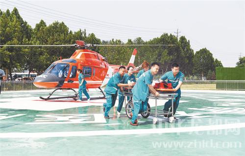 中華龍都網(wǎng)訊 6月28日上午,全市“防災(zāi)減災(zāi)立體救援”航空醫(yī)療救援啟動(dòng)儀式在周口協(xié)和骨科醫(yī)院?jiǎn)?dòng)。空中緊急救援一小時(shí)內(nèi)全省到達(dá)。圖為直升機(jī)救援演練現(xiàn)場(chǎng)。