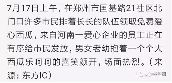鄭州市民排著長(zhǎng)長(zhǎng)的隊(duì)伍領(lǐng)取免費(fèi)愛心西瓜,來自咱扶溝的宋鐵托做了一件感動(dòng)家鄉(xiāng)人小事,而這件小事卻上了《人民日?qǐng)?bào)》。