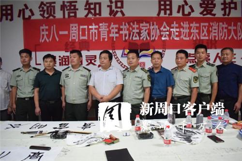 為進(jìn)一步充實(shí)官兵的警營文化生活,喜迎建軍91周年,7月30日下午,周口市青年書法家協(xié)會(huì)會(huì)長李為等人走進(jìn)東新區(qū)消防大隊(duì),現(xiàn)場揮毫潑墨,用飽蘸感情的書法作品向消防官兵表達(dá)了節(jié)日祝福。