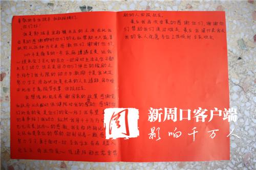 “我一定會(huì)銘記黨和政府的關(guān)懷,永遠(yuǎn)忘不了縣婦幼保健院的幫助,時(shí)刻懷著一顆感恩的心,努力學(xué)習(xí),回報(bào)社會(huì),把這份愛(ài)心傳遞下去……”王浩激動(dòng)地說(shuō)。為了表達(dá)感謝,王浩將一封感謝信遞交給了亢國(guó)良手中。