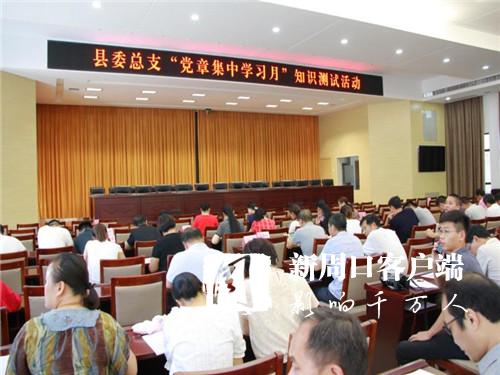為深入學(xué)習(xí)貫徹習(xí)近平新時(shí)代中國(guó)特色社會(huì)主義思想和黨的十九大精神,扎實(shí)推進(jìn)“兩學(xué)一做”學(xué)習(xí)教育常態(tài)化制度化,扶溝縣委組織部7月份在全縣廣大黨員干部中組織開(kāi)展了“黨章集中學(xué)習(xí)月”活動(dòng),以集中學(xué)習(xí)為主、個(gè)人自學(xué)為輔,采取黨員干部領(lǐng)學(xué)、組織專題討論、交流心得體會(huì)等形式,努力在學(xué)深學(xué)透、把握精髓上下功夫。為進(jìn)一步提高黨員干部的理論水平和政治覺(jué)悟,縣委組織部舉辦了本次“黨章集中學(xué)習(xí)月”黨建知識(shí)測(cè)試活動(dòng)。本次知識(shí)測(cè)試以習(xí)近平總書(shū)記系列重要講話、黨章黨規(guī)相關(guān)知識(shí)為測(cè)試內(nèi)容,以支部為單位組織全體黨員參加。