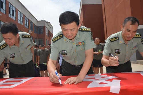 “首長的話給了我莫大的鼓舞,到部隊(duì)后我一定以首長為榜樣,向周口好兵看齊?!敝芸趲煼秾W(xué)院大學(xué)生蘭天說,這場役前培訓(xùn)動(dòng)員會更加堅(jiān)定了他棄筆從戎、參軍報(bào)國的決心。