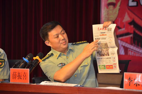 在當(dāng)天的動(dòng)員會上,薛振喜副司令員手持《周口晚報(bào)》說,報(bào)紙上刊登的“周口好兵”系列報(bào)道,每一篇都是一個(gè)榜樣,每一篇都是一種激勵(lì),希望在座的預(yù)征青年們到部隊(duì)后咬牙堅(jiān)持、刻苦錘煉,打響周口好兵品牌,家鄉(xiāng)父老等著你們早立新功的喜訊。
