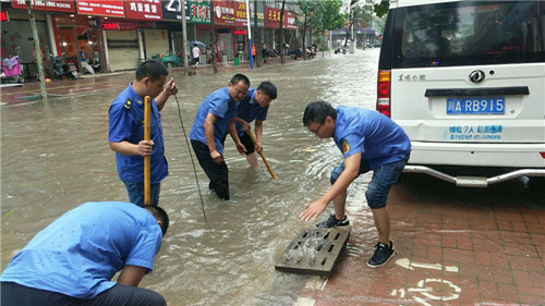 城市排澇保暢通。城管、交警等部門(mén)做好城市交通秩序和排澇工作。該縣《預(yù)案》特別對(duì)城市防汛提出詳細(xì)部署,特別是城管、交警在暴雨中從未停歇,一直在從事保暢通、疏堵排澇工作,許多市民感動(dòng)不已,并積極參與到排澇工作隊(duì)伍中來(lái)。