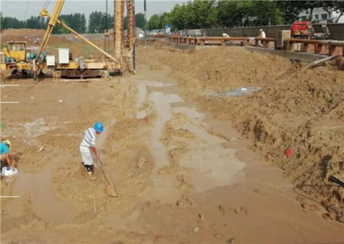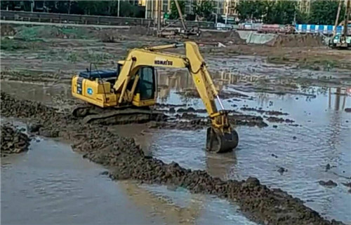 當日16時許,記者在順和家園施工現(xiàn)場看到,由于近幾天連降暴雨,基坑內(nèi)積水嚴重,目前,施工方投入井點降水水泵70臺,基坑內(nèi)抽水污水泵20臺正在進行基坑抽水,為及時復(fù)工創(chuàng)造條件。