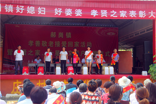 此次表彰大會,郝崗鎮(zhèn)通過層層篩選,共評選出6名好婆婆,15名好媳婦,8戶孝賢之家,孝老敬老、接愛回家先進人員24人,十星級文明戶582戶??h政協(xié)副主席、工商聯(lián)主席彭發(fā)光及鎮(zhèn)全體領(lǐng)導(dǎo)班子成員、干部職工、各個行政村“兩委”成員、各駐村工作隊、駐村第一書記及受表彰的“好婆婆、好媳婦、孝賢之家”400余人參加了會議。會議由鎮(zhèn)長姚哲主持。