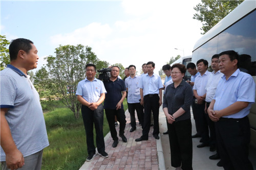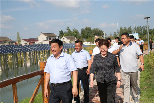 當(dāng)日下午,張穎波一行在太康縣縣長(zhǎng)李錫勇,縣委副書(shū)記、縣政法委書(shū)記王程清等領(lǐng)導(dǎo)的陪同下,先后來(lái)到河南玉柏生物科技有限公司老冢鎮(zhèn)豆丹養(yǎng)殖基地、劉寨漁光互補(bǔ)基地、劉寨村委大院、劉寨文化大院、劉寨扶貧車(chē)間及構(gòu)樹(shù)產(chǎn)業(yè)扶貧基地等處考察。