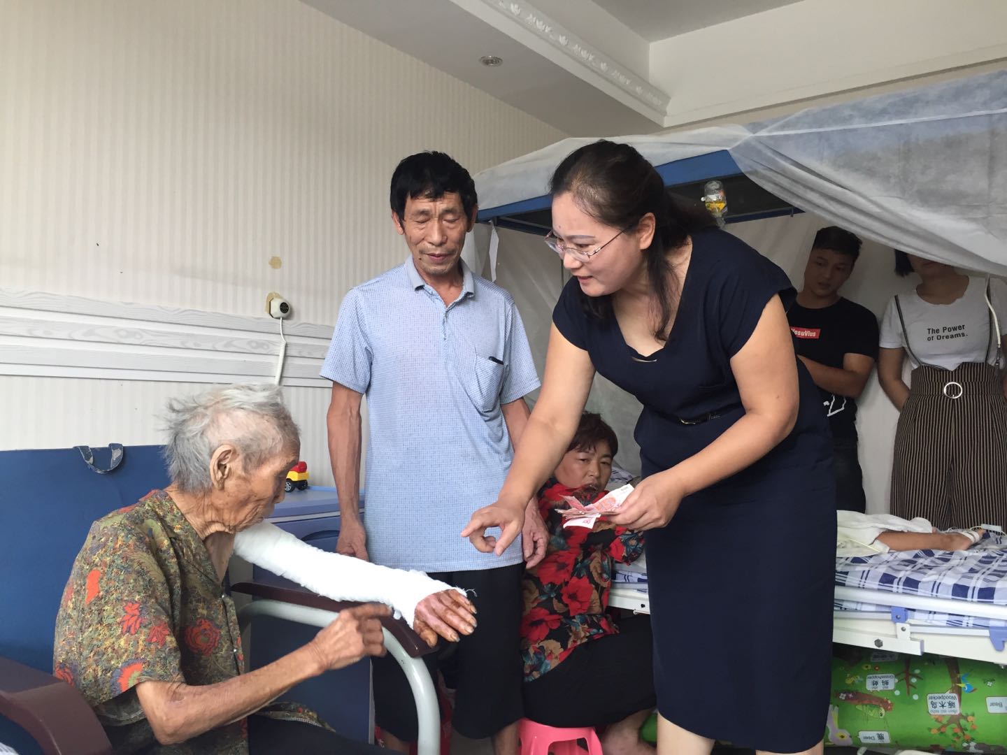 8月26日,駐村第一書記劉春華和村脫貧責(zé)任組組長李小林懷著感激之情,為周口燒傷醫(yī)院送去錦旗兩面。周口燒傷醫(yī)院長張巋說:“幫扶工作是黨的工作,縣、鄉(xiāng)、村干部的真心幫扶,我們醫(yī)院也應(yīng)當(dāng)發(fā)揮扶貧濟困的作用,盡一些社會責(zé)任,為貧困的群眾做點好事,解決他們的實際困難”,院方當(dāng)即決定贈送給李二俊老太太2000元現(xiàn)金營養(yǎng)費?!?/p>