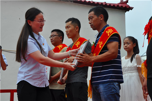 會上,與會領(lǐng)導(dǎo)依次為評選出的“孝善敬老先進(jìn)個(gè)人”“孝賢之家”“優(yōu)秀黨員”“脫貧光榮戶”“十星級文明戶”及“愛心企業(yè)”等六類先進(jìn)個(gè)人和家庭頒獎(jiǎng)。受表彰的孝賢之家的子女們雙膝跪地向老人行中國傳統(tǒng)跪拜大禮,感謝父母養(yǎng)育之恩,把現(xiàn)場氣氛推向高潮,讓觀眾們?yōu)橹畡忧椤?/p>
