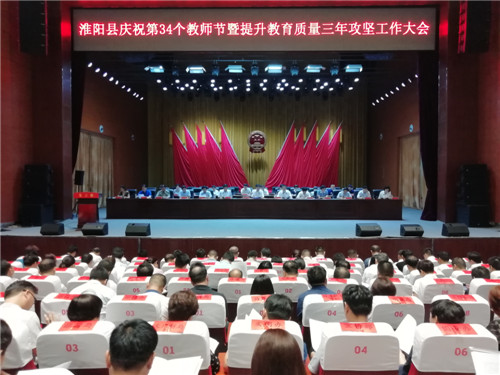 9月3日,在第34個(gè)教師節(jié)來(lái)臨之際,淮陽(yáng)縣慶祝第34個(gè)教師節(jié)暨提升教育質(zhì)量三年攻堅(jiān)工作大會(huì)召開(kāi)。會(huì)議主要目的是總結(jié)一年來(lái)教育工作取得的成績(jī),對(duì)教育戰(zhàn)線涌現(xiàn)出的“優(yōu)秀校長(zhǎng)”“師德標(biāo)兵”“優(yōu)秀班主任”“優(yōu)秀教師”進(jìn)行表彰,并對(duì)全縣提升教育質(zhì)量三年攻堅(jiān)工作進(jìn)行全面動(dòng)員部署。