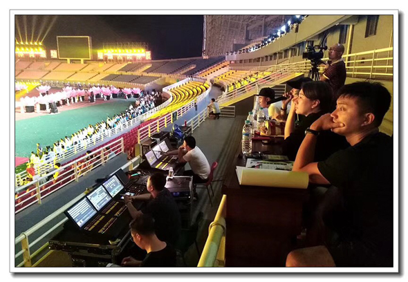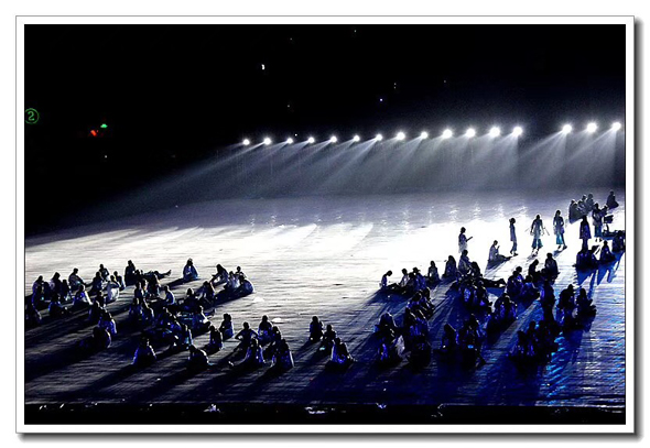 省運會開幕式第二篇章《幸福家園》,昨晚八點在周口體育場對光排練,直至凌晨兩點結(jié)束。葛英 攝