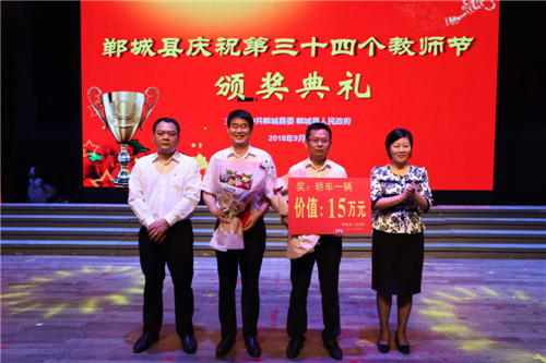 9月10日,鄲城縣舉行慶祝第34個(gè)教師節(jié)頒獎(jiǎng)典禮,縣委書記羅文閣出席典禮并講話、縣長李全林致辭,縣領(lǐng)導(dǎo)姜永來、侯磊、吳青鋒、王智華、呂振龍、馬超、崔衛(wèi)華等出席頒獎(jiǎng)典禮。