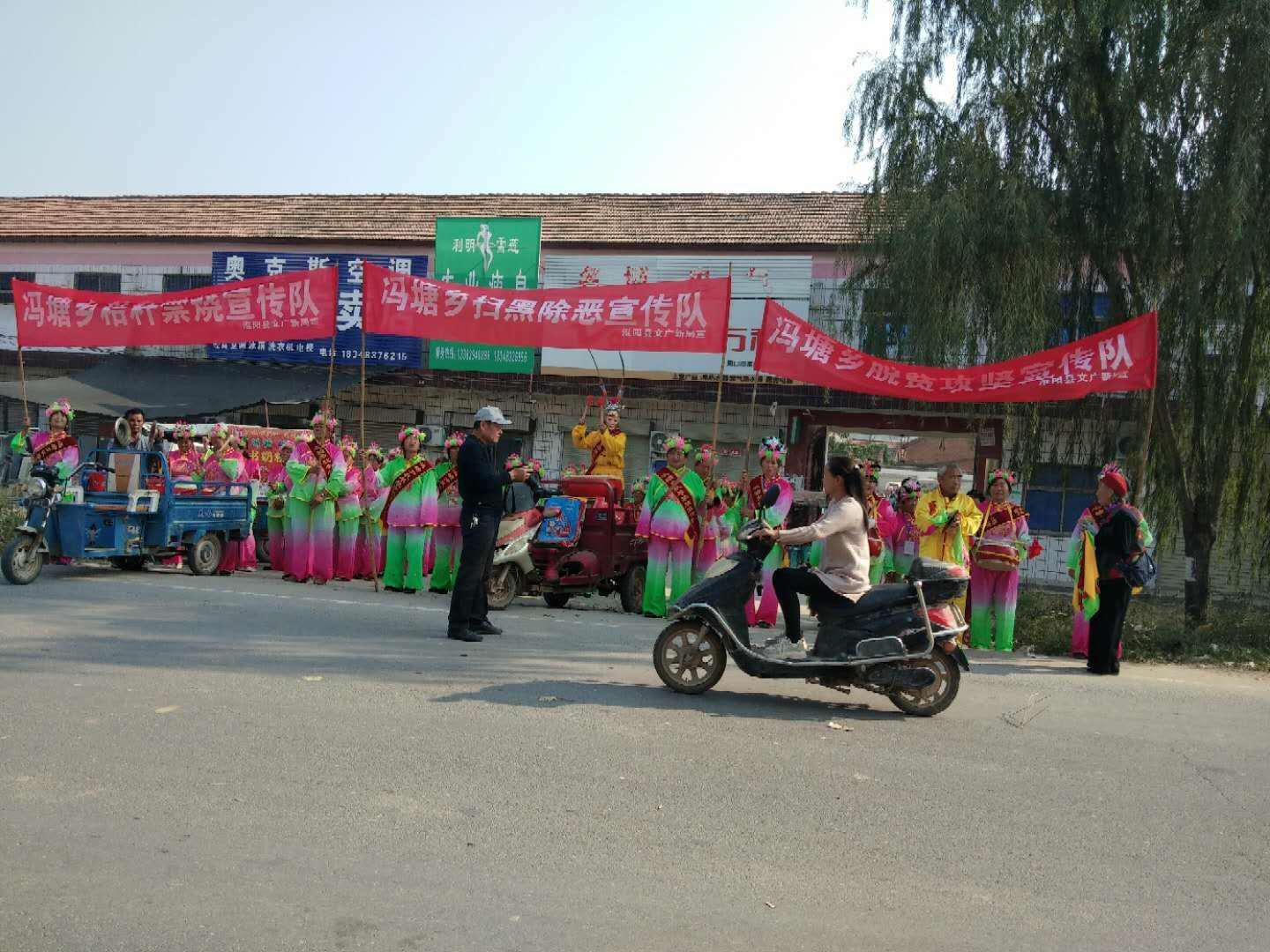馮塘鄉(xiāng)脫貧攻堅、秸稈禁燒、掃黑除惡三支宣傳隊進(jìn)行宣傳。