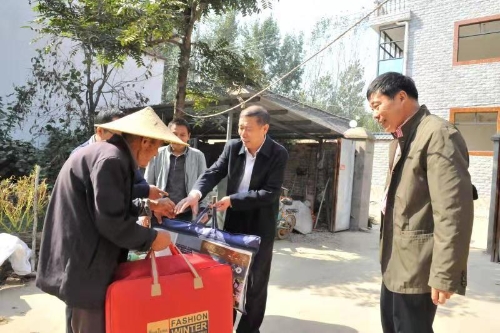為進一步弘揚中華民族敬老、愛老、助老的優(yōu)良傳統(tǒng)美德,讓結隊幫扶村——太康縣王集鄉(xiāng)李小橋行政村90歲及以上老人過一個溫馨又和諧的重陽佳節(jié),10月12日,周口市稅務局黨委委員、副局長徐平烽,黨委委員、總會計師李霞,黨委委員、總經濟師張振祥等在對全村9名高齡老人進行了走訪慰問,為老人們送上節(jié)日的祝福和價值近2000元的慰問品。