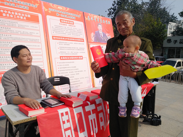 為在全社會(huì)深入開展尊崇憲法、學(xué)習(xí)憲法、遵守憲法、維護(hù)憲法、運(yùn)用憲法宣傳教育活動(dòng),弘揚(yáng)憲法精神,加強(qiáng)憲法實(shí)施和監(jiān)督,讓憲法知識(shí)融入市民生活,10月17日,市依法治市工作領(lǐng)導(dǎo)小組辦公室組織市公安局、市文廣旅局、市教育局等依法治市領(lǐng)導(dǎo)小組43個(gè)成員單位,在中心城區(qū)五一文化廣場(chǎng)集中開展了憲法學(xué)習(xí)宣傳活動(dòng)。