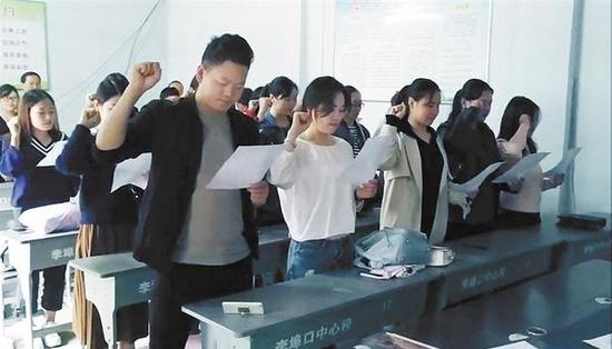 “我志愿成為一名人民教師,忠誠黨的教育事業(yè)……”當天下午,周口港區(qū)中小學、幼兒園的15名新聘教師在李埠口鄉(xiāng)中心校進行了入職宣誓(如圖)。一句句鏗鏘有力的誓詞,一句句莊嚴的承諾,表達了他們決心以實際行動,爭做人民滿意教師的堅定信念。