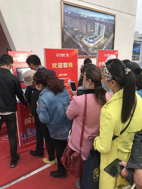 房展會期間,一些市民紛紛到萬達廣場展廳體驗“投資”快感。