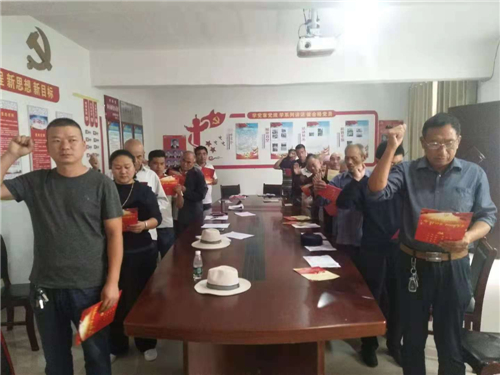 “我志愿加入中國共產(chǎn)黨,擁護黨的綱領(lǐng),遵守黨的章程,履行黨員義務(wù)……”在汲水鄉(xiāng)張嶺行政村室,汲水鄉(xiāng)黨委副書記王申帶領(lǐng)全體黨員面對黨旗,一起重溫入黨誓詞,并學(xué)習(xí)黨章黨規(guī)。