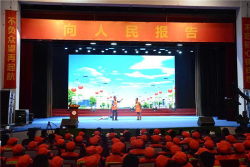 在當(dāng)天的會(huì)議上,全體與會(huì)人員首先集中觀看了短片《向人民報(bào)告》,詳細(xì)全面地總結(jié)回顧了“代人民管理城市”理念實(shí)施一年來的工作,對(duì)上年度民意調(diào)查結(jié)果和城市管理成果向人民進(jìn)行報(bào)告,對(duì)今年度的民意調(diào)查進(jìn)行分析研判,對(duì)下一步城市管理工作進(jìn)行了安排部署,并對(duì)城市管理先進(jìn)單位、環(huán)衛(wèi)工作先進(jìn)單位、優(yōu)秀環(huán)衛(wèi)工人、城市管理工作先進(jìn)個(gè)人進(jìn)行表彰。