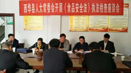 11月2日,西華縣人大常委會(huì)副主任趙曉春帶領(lǐng)由部分省、市、縣人大代表組成的執(zhí)法檢查組,對(duì)該縣貫徹實(shí)施《中華人民共和國(guó)食品安全法》情況進(jìn)行了執(zhí)法檢查??h政府副縣長(zhǎng)趙增先及相關(guān)部門負(fù)責(zé)人等陪同。