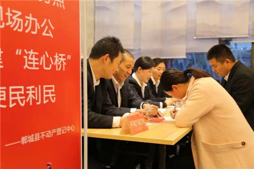 11月10日至13日,鄲城縣不動(dòng)產(chǎn)登記中心緊緊圍繞“服務(wù)群眾、服務(wù)民生”,用釘釘子的精神,苦練繡花功夫,創(chuàng)新服務(wù)方式,主動(dòng)貼近服務(wù),擦亮“小窗口”,進(jìn)駐剛開(kāi)盤(pán)的樓盤(pán),積極搭建起便民利民“連心橋”,真正做到讓信息多跑路、讓群眾少跑路,實(shí)現(xiàn)了“流程順暢、高效便捷、群眾滿意”的業(yè)務(wù)辦理,受到了辦事群眾和企業(yè)的高度稱贊。