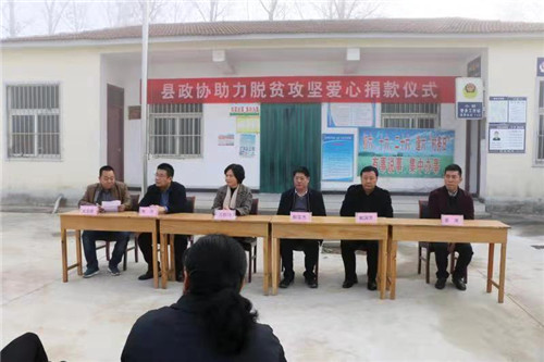 11月13日,在扶溝縣桐丘街道辦事處小胡行政村村委院內(nèi),縣政協(xié)副主席郝寶杰將市、縣政協(xié)委員們捐贈(zèng)的2萬元錢交到小胡、東五村黨支部書記手中,也將政協(xié)委員對脫貧攻堅(jiān)事業(yè)的愛心傳導(dǎo)到貧困戶的心中。