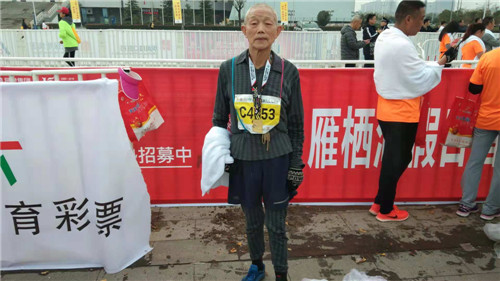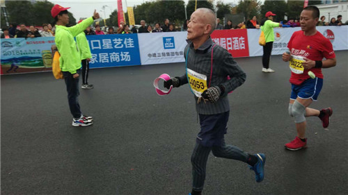 當(dāng)日上午10時(shí)許,孔祥義老人堅(jiān)持跑完了半程馬拉松21.0975公里的路程,臉上露出滿(mǎn)意的笑容。