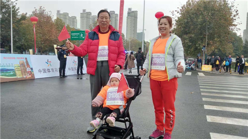 11月18日,在2018周口馬拉松暨善跑中國周口站現(xiàn)場,記者見到了只有1歲8個月的小選手姚易晨,根據(jù)2018周口馬拉松暨善跑中國周口站組委會提供的數(shù)據(jù),她是本屆賽事最小的報名選手。