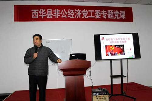 11月17日,西華縣非公黨工委邀請清華大學珠海教育中心EMBA國學講師徐一農先生,為全縣百余名非公企業(yè)黨員集中上了一堂生動的黨課??h委組織部、縣非公黨工委有關領導、酷農航空、縣電商產(chǎn)業(yè)園、遠大鍋爐等40余家非公企業(yè)、個私協(xié)會黨支部參加了集中黨課。
