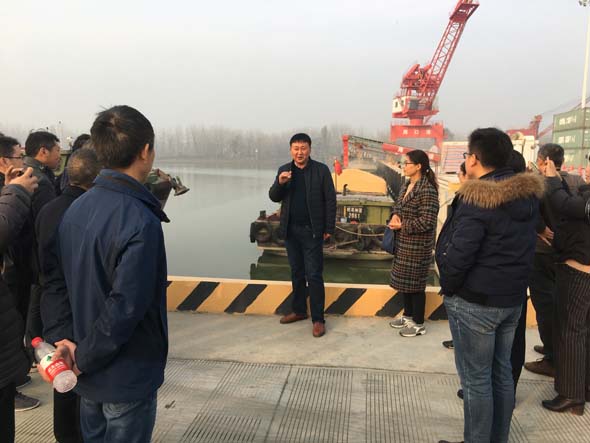 在周口中心港碼頭,港口碼頭運營辦相關(guān)負責人詳細介紹了港口的規(guī)劃、建設(shè)和試運營情況。隨后,專家團觀看了《以港促城》宣傳視頻,并到周口中心港4#5#港池裝卸現(xiàn)場,認真了解沙潁河航道、船閘通過能力以及貨源品類數(shù)量等現(xiàn)狀。
