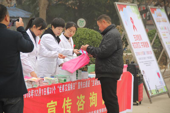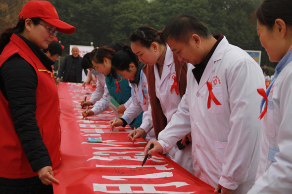 11月30日上午,由項(xiàng)城市衛(wèi)生計(jì)生委組織,來自項(xiàng)城市疾控中心、市第一人民醫(yī)院、市中醫(yī)院、市婦幼保健院及市內(nèi)的其它十余家醫(yī)療機(jī)構(gòu),共同在該市人民公園舉行第31個“主動檢測,知艾防艾,共享健康”的“世界艾滋病日”主題宣傳活動?;顒蝇F(xiàn)場,醫(yī)護(hù)人員共向群眾發(fā)放宣傳資料1800余冊(種),接受230多人次的咨詢服務(wù),大力宣傳倡導(dǎo)建立文明健康的生活方式,并希望大家都能正視艾滋、關(guān)注艾滋、預(yù)防艾滋。