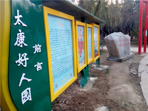 為把好人精神鐫刻在太康發(fā)展和進步的進程中,把太康建設成為好人之城、文明之城、和諧之城、美麗之城、幸福之城,從2018年9月起,太康“好人園”經(jīng)過緊鑼密鼓地籌建,如今開園迎賓。好人園緊扣“好人”主題,以道德風尚建設為主線,在休閑公園的基礎上,秉承“因地制宜、因勢利導”的原則,堅持寓教于園、寓教于景、寓教于樂,以小處著手、局部微調(diào)的手法,通過“好人步道”“好人亭”“好人樹”“好人大舞臺”“好人精神長廊”五大版塊,將道德風尚高地建設與公園的整體風格和功能定位完美結(jié)合。好人園兼顧了公園本身特色與文化傳播需要,利用林蔭小道,以石、亭、牌等基礎設施為載體,圖文并茂地展示太康近年來獲得國家和省級表彰的道德典型、身邊榜樣的先進事跡,一步一景,隨景賦形。市民在游園過程中,潛移默化地接受“真、善、美”的教育和熏陶,激發(fā)人們見賢思齊,榜樣的引領(lǐng)作用不斷放大。