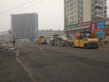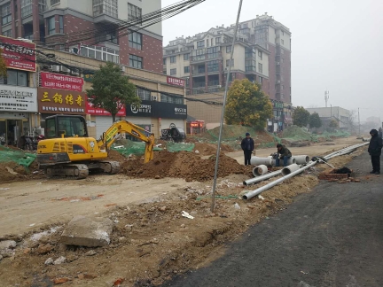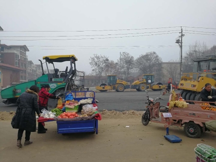 記者今日走訪漢陽(yáng)路中段(穎河路-建設(shè)路)看到,目前該路段機(jī)動(dòng)車(chē)道已鋪上黑色的混凝土物質(zhì),人行道則是壓實(shí)過(guò)的土路。壓路機(jī)等設(shè)備??吭诘缆穬深^,并未啟動(dòng),有兩臺(tái)挖掘機(jī)及數(shù)十名工人在人行道上,鋪設(shè)下水道。施工路段內(nèi),有不少菜販在沿街叫賣(mài)。
