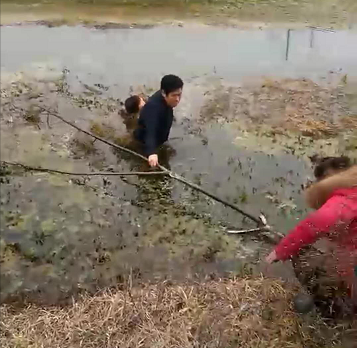 當(dāng)日上午12時許,在走村入戶返回住處途中,突然聽到不遠(yuǎn)處的黑河邊有女子大聲在喊:“快點來河里救人啊!有人跳進河里啦!”正好路過此處的倪永勝和王懷銀聽到喊叫聲后,毫不猶豫地直奔出事地點。50多歲的王懷銀來不及脫下衣服和掏出兜里的手機,一下子跳進了冰冷的河水中,倪永勝迅速組織村里趕來的群眾進行協(xié)助施救。此時,只見王懷銀全身衣服都濕透,在冰冷的河水中,王懷銀一手拄著一根樹枝防止下滑,一手使勁拉著跳河女子的手,在倪永勝和村民們的幫助下,將輕生女子成功救出。后經(jīng)醫(yī)生檢查,由于施救及時,該女子并無大礙。