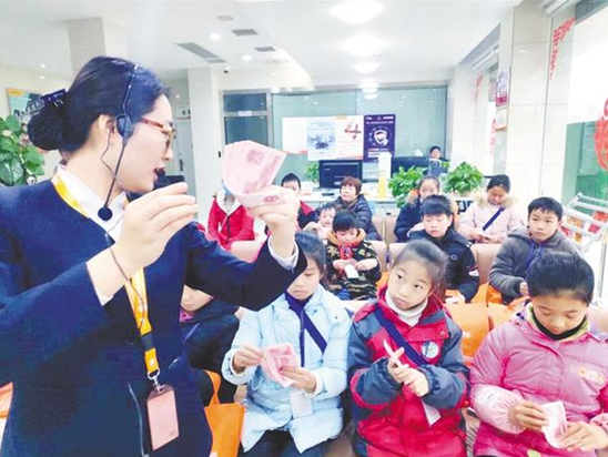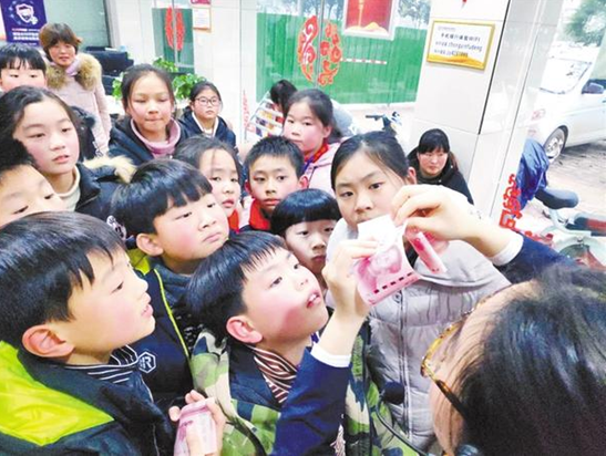 “歡迎各位小記者的到來(lái),大家在過(guò)年的時(shí)候有沒(méi)有收到壓歲錢呢?”項(xiàng)城中銀富登村鎮(zhèn)銀行公司部經(jīng)理馮靖涵的一句話頓時(shí)讓小記者們從緊張的情緒中釋放出來(lái)?!拔业膲簹q錢,媽媽幫我存在銀行里了!”“我壓歲錢還放在存錢罐里,有時(shí)候還會(huì)拿出來(lái)數(shù)一數(shù)!”……小記者們的回答讓家長(zhǎng)們都不由地笑起來(lái)。