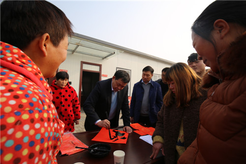 依然是在年末歲初的冬日暖陽里,12月20日中午1時30分,區(qū)委書記李宗喜再次來到川匯區(qū)小橋辦事處興業(yè)社區(qū),和10名書法家一起,現(xiàn)場為社區(qū)居民寫春聯(lián)送祝福。