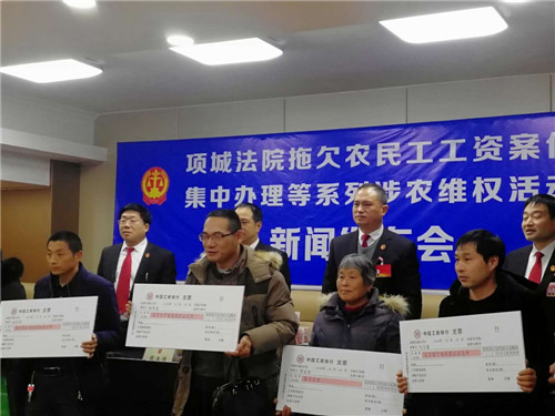 “感謝項(xiàng)城法院的領(lǐng)導(dǎo),他們一心為民,克服種種困難,幫助我們要回了血汗錢(qián)?!?2月24日,項(xiàng)城法院拖欠農(nóng)民工工資案件集中辦理等系列涉農(nóng)維權(quán)活動(dòng)新聞發(fā)布會(huì)在該院召開(kāi),16名涉農(nóng)維權(quán)案件當(dāng)事人從項(xiàng)城法院黨組成員、院長(zhǎng)張永波的手中接過(guò)索要許久的血汗錢(qián),喜極而泣。