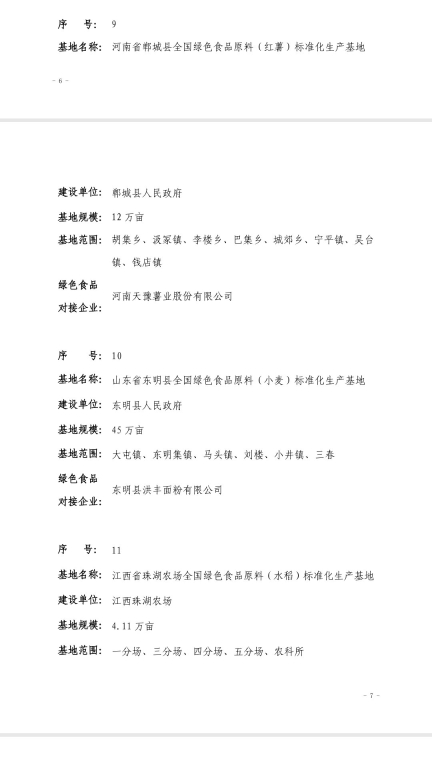 12月30日,中國綠色食品發(fā)展中心發(fā)布2018年全國綠色食品原料標(biāo)準(zhǔn)化生產(chǎn)基地名單,全國14個申報的基地獲批,鄲城縣人民政府在胡集鄉(xiāng)、汲冢鎮(zhèn)、李樓鄉(xiāng)、巴集鄉(xiāng)、城郊鄉(xiāng)、寧平鎮(zhèn)、吳臺鎮(zhèn)、錢店鎮(zhèn)等8個鄉(xiāng)鎮(zhèn)建設(shè),河南天豫薯業(yè)有限公司作為對接企業(yè)的12萬畝紅薯種植基地榜上有名。