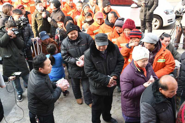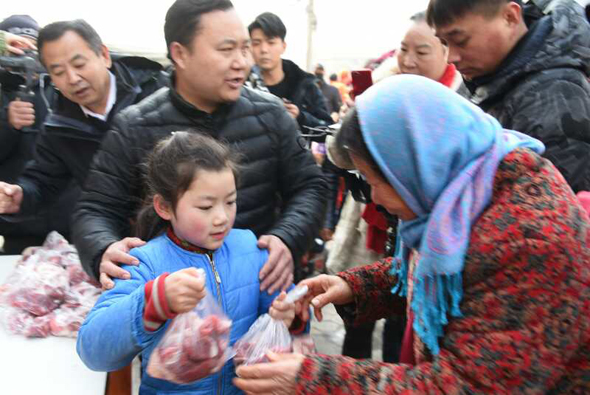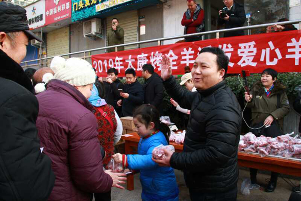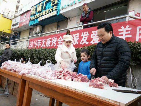 小小燒烤店門前,成了倡導(dǎo)“愛與奉獻(xiàn)主會場”。 2019年1月1日上午10點(diǎn),新年第一天,鄭州市國基路與豐慶路交叉口太康烤全羊店門口,60多名環(huán)衛(wèi)工、殘疾人、困難群眾等弱勢群體聚集在這里,排隊免費(fèi)領(lǐng)取“羊肉哥”孫合理和妻子劉曉愛派送的一份新年禮物——愛心羊肉,而這愛舉從2010年元旦開始到如今,已經(jīng)堅持了9年。
