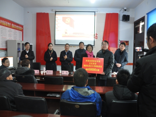 作為河南省人民檢察院的直屬學(xué)校,河南檢察職業(yè)學(xué)院也積極參與瓦房莊的脫貧攻堅(jiān)工作。在當(dāng)日舉行的河南檢察職業(yè)學(xué)院文化扶貧啟動(dòng)儀式上,他們不僅送來了精彩的黨課,還為該村小學(xué)捐贈(zèng)現(xiàn)金5萬元,用于村小學(xué)操場(chǎng)硬化,改善辦學(xué)條件。
