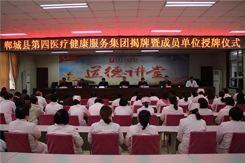 1月30日,鄲城縣第四醫(yī)療健康服務(wù)集團(tuán)揭牌暨成員單位授牌儀式,在該集團(tuán)牽頭醫(yī)院鄲城縣婦幼保健院會議室舉行。縣衛(wèi)計委黨組書記、主任付登霄,副主任黃玉珍、劉清俊,辦公室主任楊光貞,鄲城縣第四醫(yī)療健康服務(wù)集團(tuán)理事長、縣婦幼保健院院長亢國良,副院長楊軍、王斌出席儀式,并為第四醫(yī)療健康服務(wù)集團(tuán)揭牌,為第四醫(yī)療健康服務(wù)集團(tuán)其他成員單位授牌。黃玉珍主持儀式。